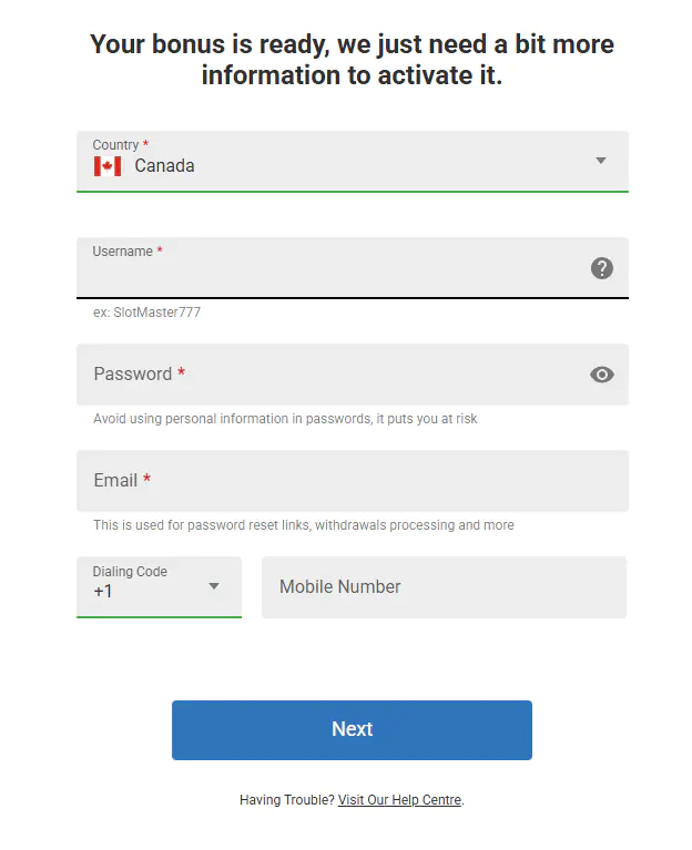 Once your C$1 deposit is confirmed through any supported method (Interac, Visa, or Mastercard), 40 ruby fortune free spins are added instantly to your account.
